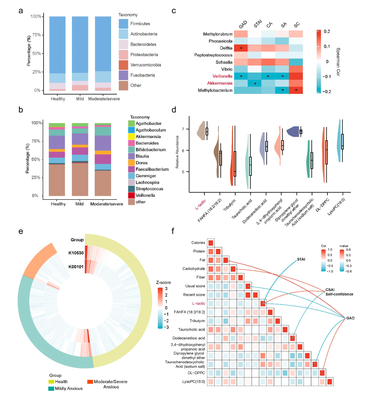 图1. 焦虑与肠道微生物组成和粪便乳酸有关