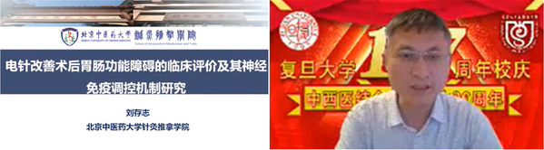 北京中医药大学的刘存志研究员就“电针改善术后胃肠功能障碍的临床评价及其神经免疫调控机制研究”做了精彩报告。刘存志研究员先介绍电针改善术后胃肠功能的研究史及研究进展,得出电针足三里可明显缩短术后首次排气、排便时间的结论,继而展示了电针改善术后胃肠功能障碍的基础研究发现,并对该治疗方式进行了未来展望。