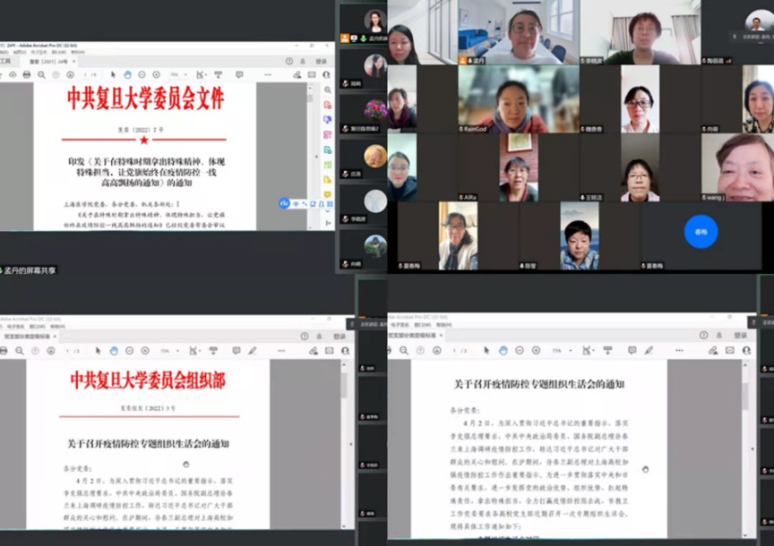 3月18日,党支部开展线上组织生活会,支部书记孟丹老师强调全体党员要用实际行动体现担当,在教学、科研、生活等各方面保障在校师生需求。4月6日,党支部以“严峻形势下的责任与担当”为主题召开专题组织生活会,引导动员支部全体党员不断增强共克时艰的思想自觉、服从大局的政治自觉、抗疫有我的行动自觉,切实做到“三个坚持”:一是要坚持守土有责、守土担责、守土尽责;二是要发挥模范作用,落实防护措施;三是要营造良好氛围,引导群众不信谣、不传谣。