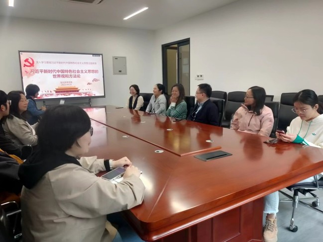 此次主题教育学习由党支部书记潘东宁老师主持并介绍“习近平新时代中国特色社会主义思想的世界观和方法论”的主要内容,深入解析党的二十大报告中强调的:把握好新时代中国特色社会主义思想的世界观和方法论就要做到“六个必须坚持”的深刻涵义。