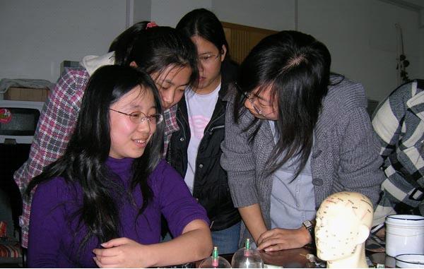 这一段对话,并非来自医生与病人,而是来自中西医结合系的冯异老师,和08级临床医学八年制的林莹同学之间。原来这是中西医结合系开展的一次名为“针灸初体验”的主题活动。